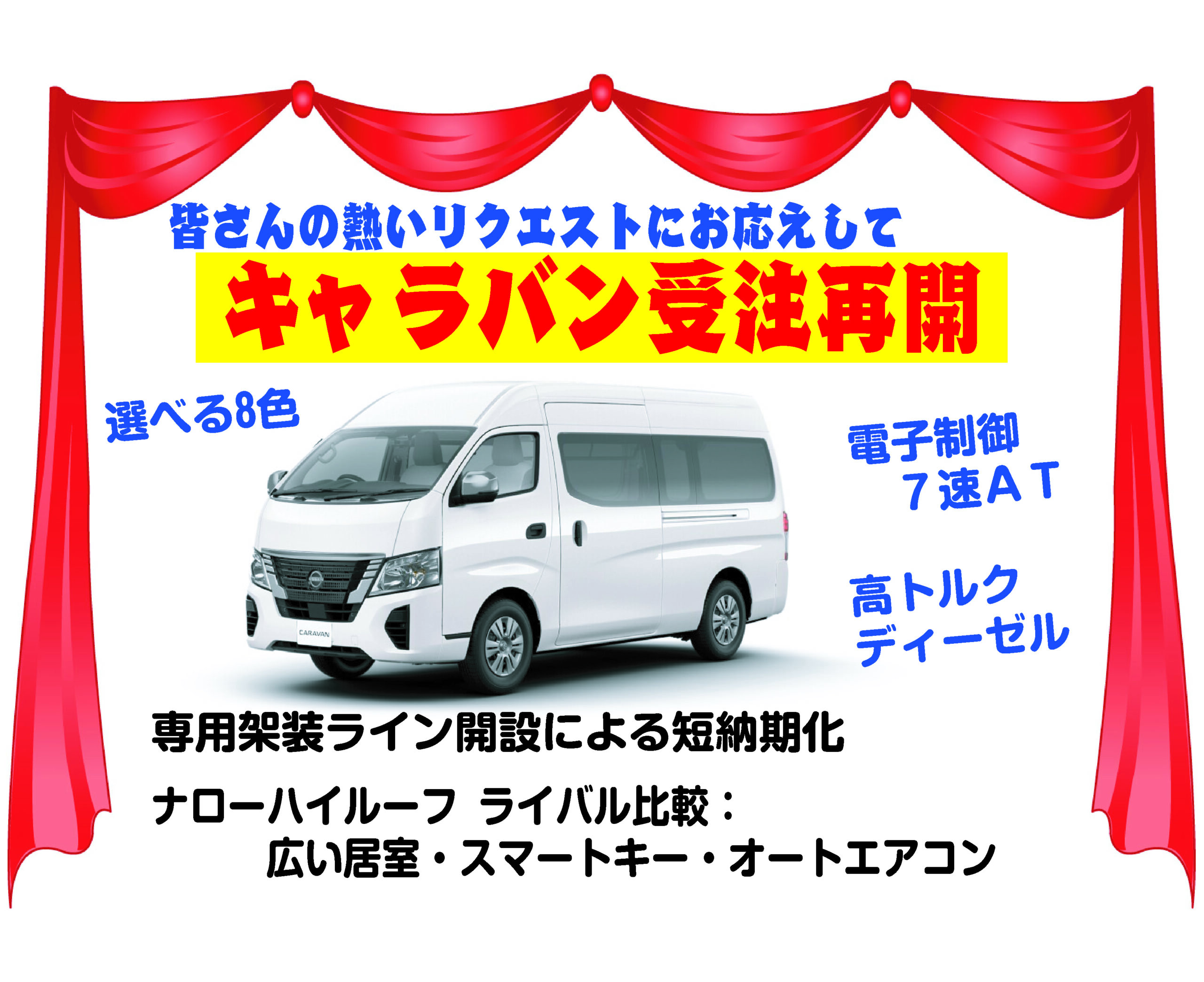 皆さんからの熱いリクエストにお応えして・・・ 日産キャラバンへの架装を再開しました! 詳しくは各店舗までお問い合わせくださいませ…