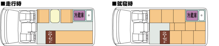 ダイネットとベッドスペースを完全に分離することで食事の空間と就寝スペースが分かれています。そのおかげで食事の後片付けをしなくても二人が寝られます。(冷蔵庫とシンクの位置関係はベース車によって異なります) ※上記図面は代表 … 続きを読む プライベート