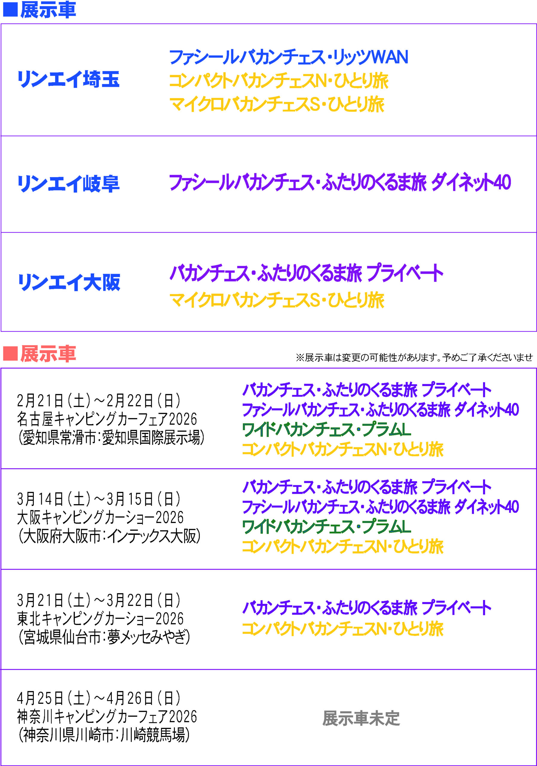 名古屋キャンピングカーフェア2026 SPRING出展のお知らせです。